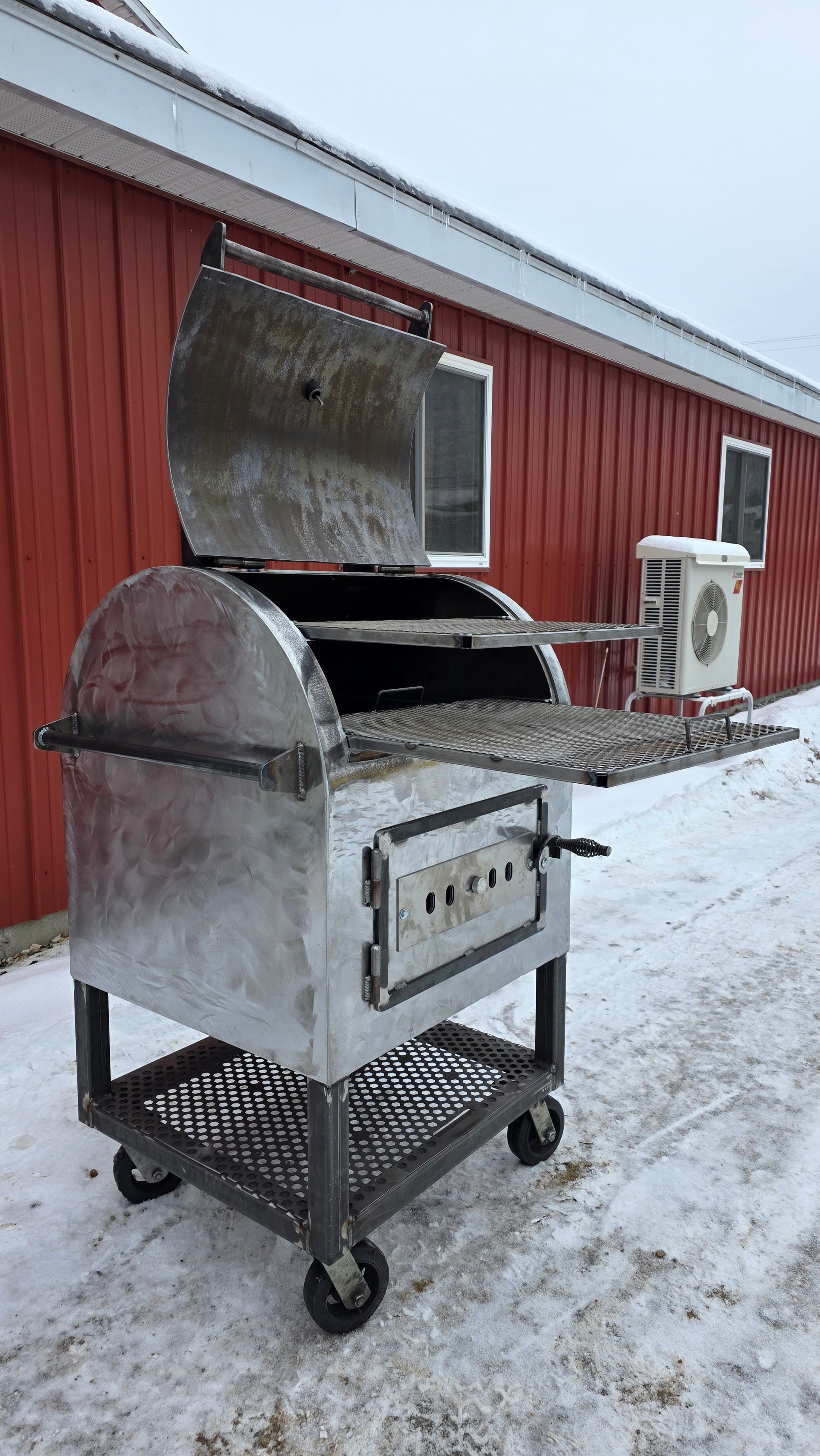 Bootlegger #001 is a true one-of-one build, hand-crafted from steel as thick as ¼″ and built without compromise. This direct-cook style smoker features three full levels of cooking space, giving you flexibility whether you’re running straight fire, managing heat zones, or dialing in longer cooks.